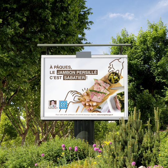 Grande campagne d'affichage urbain rappelant que notre produit, le jambon persillé, est le produit incontournable pour Pâques.